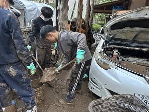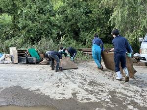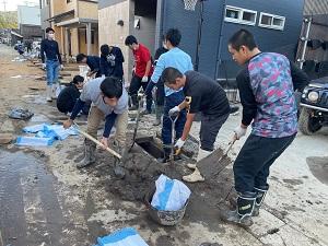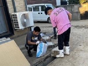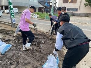 野球部と男子バレーボール部が、先日の能登豪雨により浸水被害に遭われた地区やお宅で泥の搔き出しや家財などの搬出ボランティアを行いました。