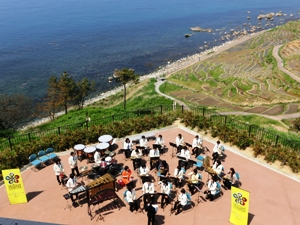 輪島市千枚田で行われたミニコンサートに吹奏楽部が参加しました。