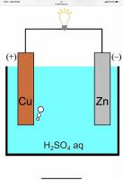 亜鉛と銅を導線で繋いで希硫酸に浸したボルタ電池