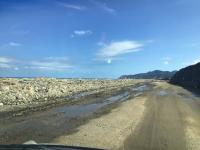 隆起した海底だった場所に道路を敷設中です