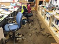 職員室も泥だらけ