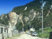 地震で崩落した山沿いの道路の代わりに