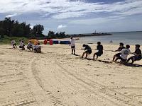 待ち時間の間に綱引き大会やムカデ競争