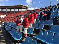 スタンドでは2年生が後輩たちの活躍に声援を送ります