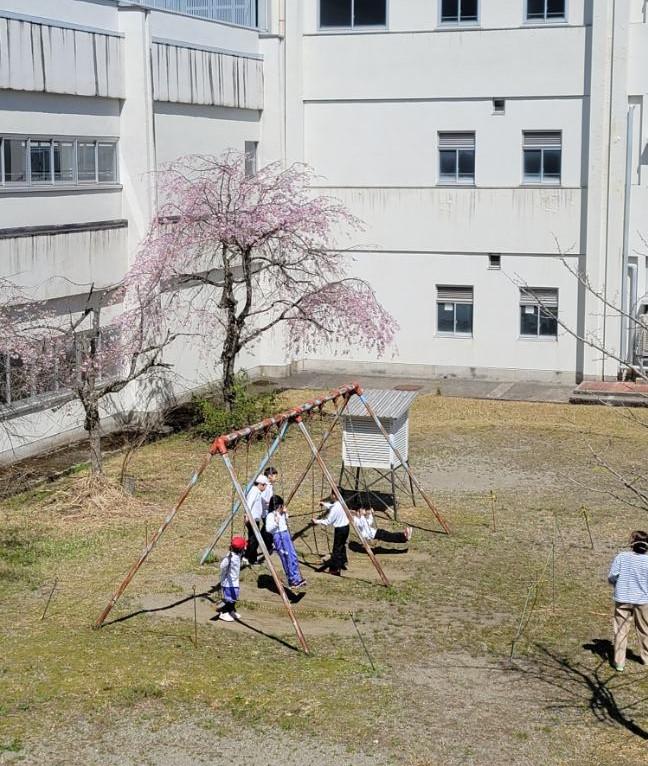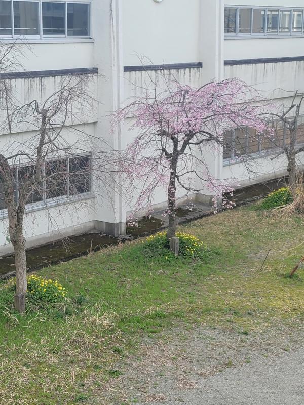 今日は6年生が登校し、入学式の準備をしてくれました。自分から進んで動く姿が見られうれしく思います。中庭のしだれ桜も咲き出しました。