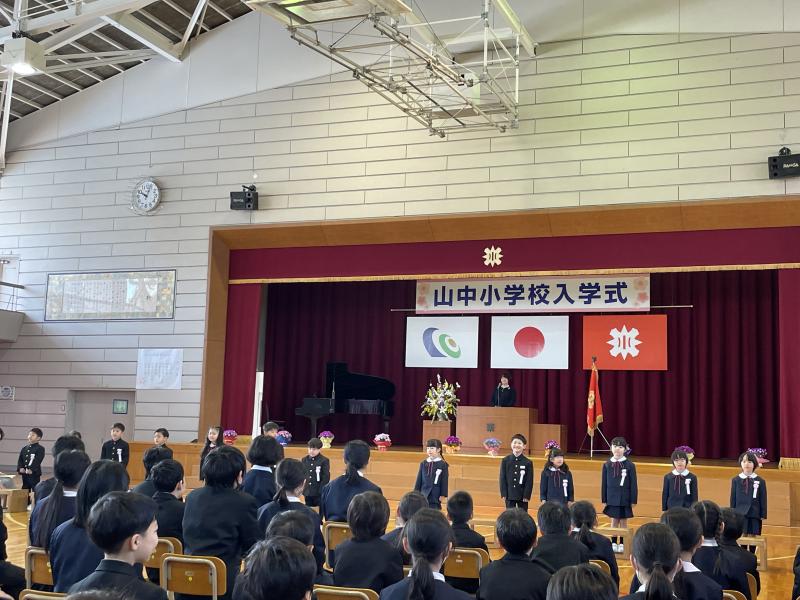 15名の1年生を迎え、入学式が挙行されました。入学式のあと教室で、山中温泉まちづくり推進協議会から1年生に寄贈されたヘルメットの贈呈式も行われました。感謝申し上げます。