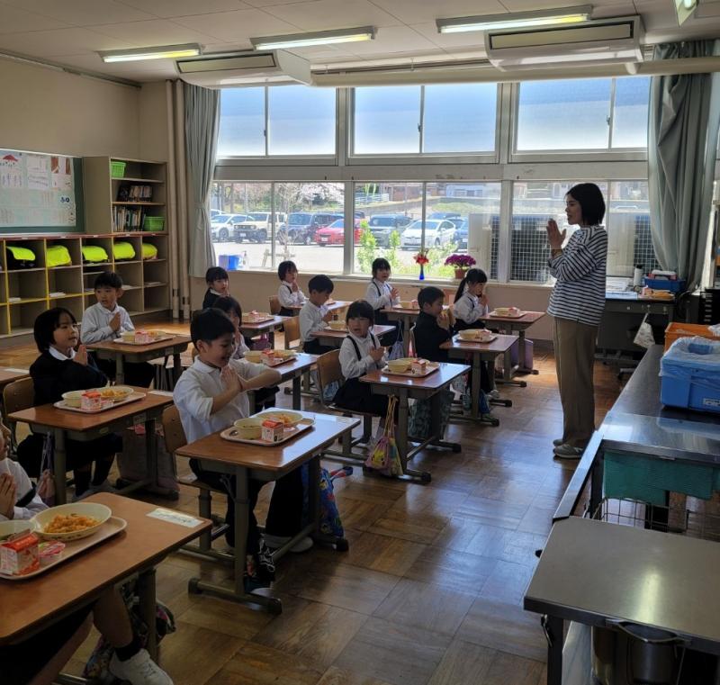 2024年4月12日 12時28分12日金曜日、今日から1年生も給食が始まりました。教室の窓からも桜を堪能できます。1週間新たな気持ちで頑張る姿が見られました。