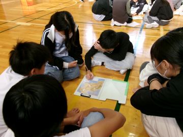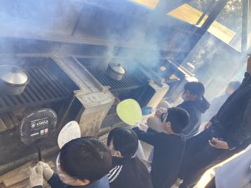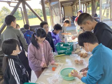 2日目は、泊まった部屋の片づけをした後、オリエンテーリングと野外炊飯をしました。