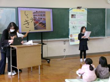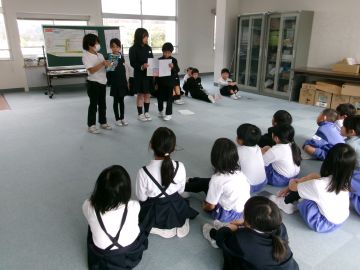 1年生にわかりやすく、そして本を楽しんでもらえるように工夫して発表していました。