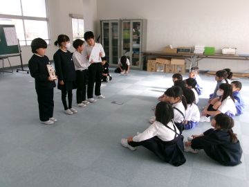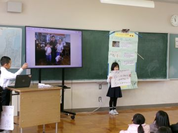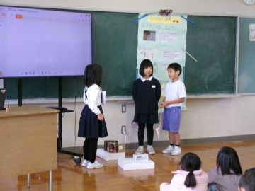 探検させていただいたお店の方々や保護者の方を招いて、町探検で見つけたすてきなヒミツの発表会をしました。