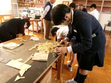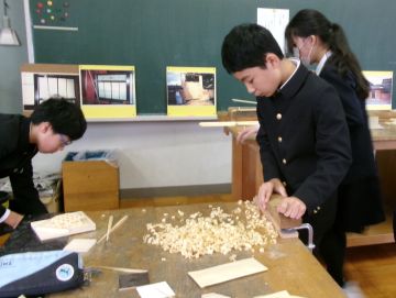 能美市の小谷建具さんが講師として、「のこぎり」や「かんな」の使い方を教えてくださいました。