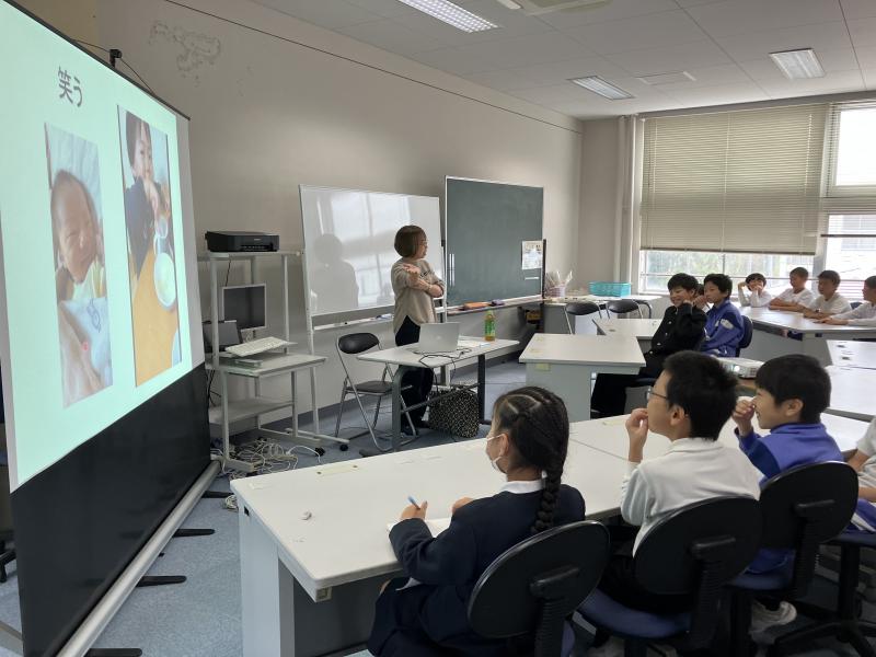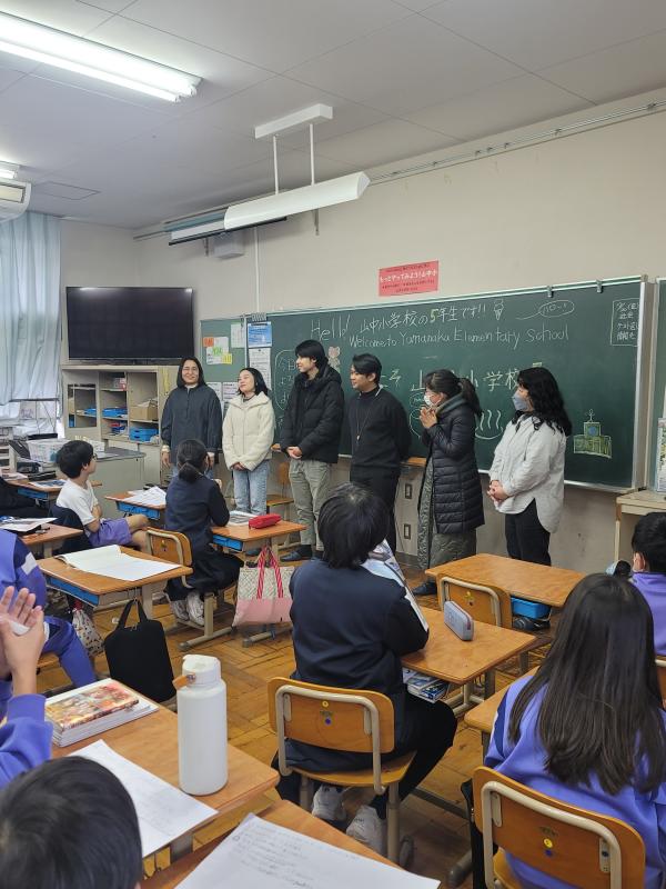 5年生が、外国語の授業でKIAの留学生に、山中温泉の魅力を伝えました。留学生たちも温かく会話を楽しんでくださいました。また、6年生の代表が12月14日に行った発表やリハーサルの様子です。