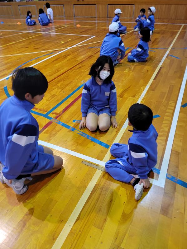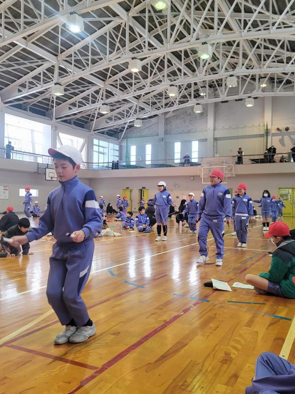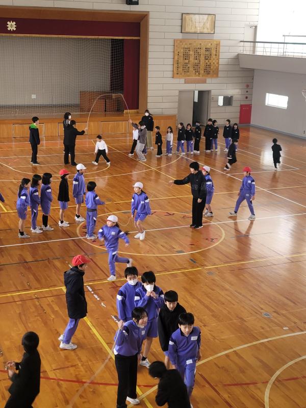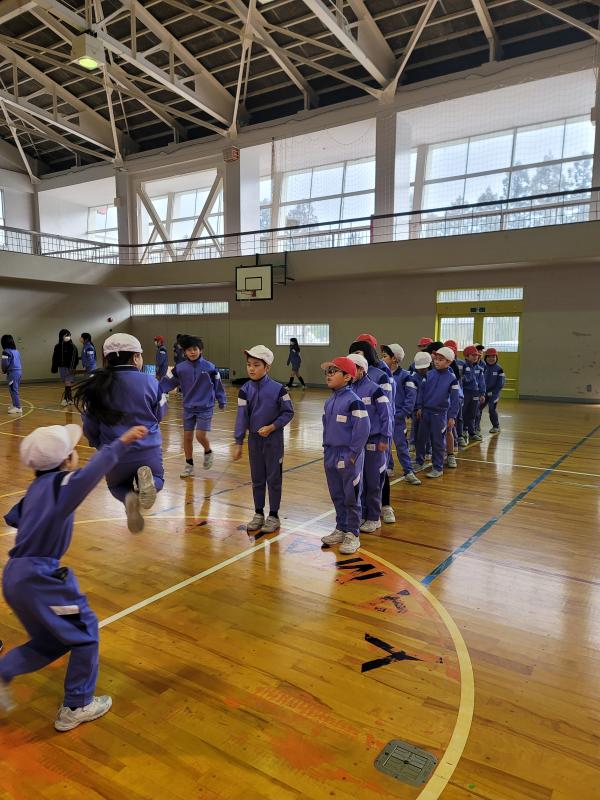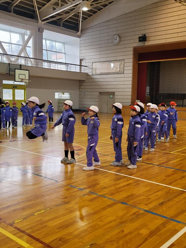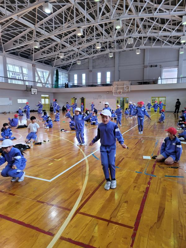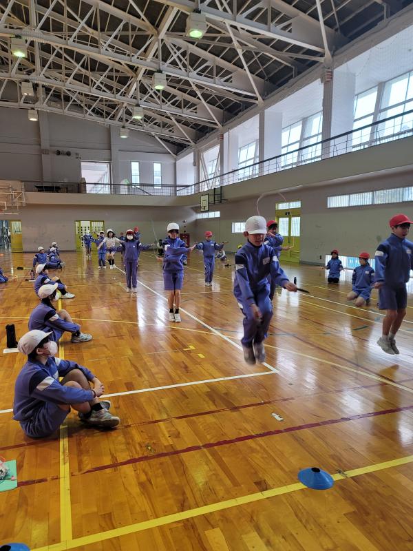 1,3,5年と2,4,6年に分かれて、なわとび大会のリハーサルをしました。