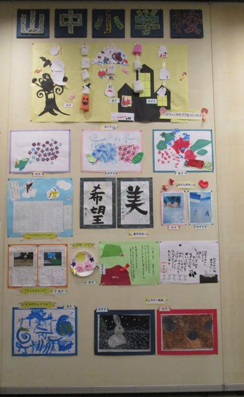 なわとび大会では粘り強く頑張る姿や笑顔で応援する姿など、見られました。あやとり学級の子どもたちの学習の成果をふれあい展で紹介しました。