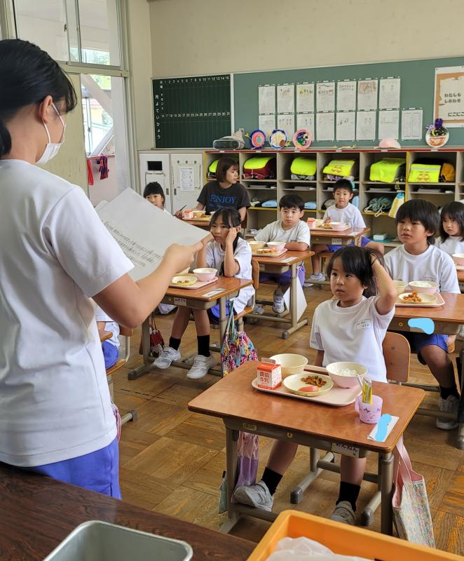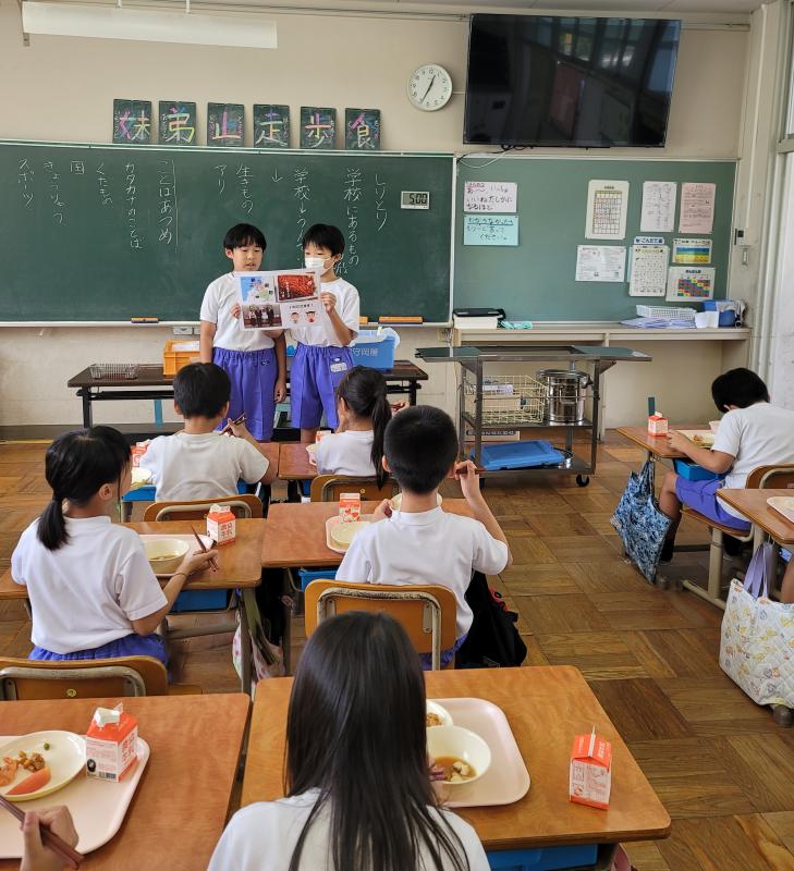 9月11日給食に、加賀ロータリークラブ寄贈の甘エビがでて、給食委員の子どもたちが各クラスや職員室を回って説明してくれました。