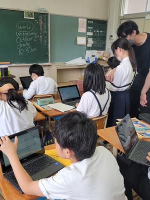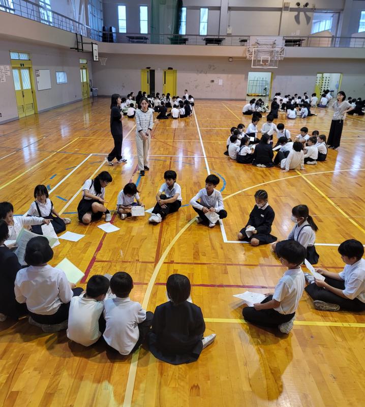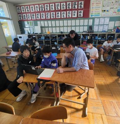 10月3日たてわり活動で、運動会応援団の解団式がありました。班に分かれて振り返りを伝え合いました。そのほか、授業の様子をご覧ください。