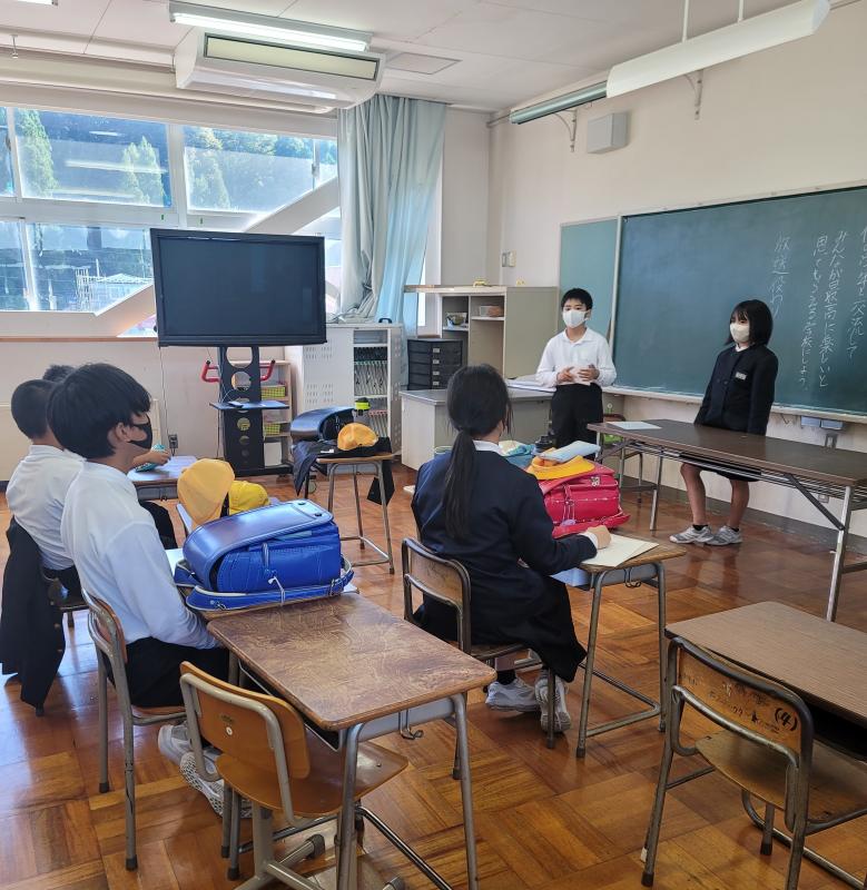 21日最初の児童会後期委員会がありました。他に5年生の総合的な学習の時間にゲストティーチャーが来てくださいました。