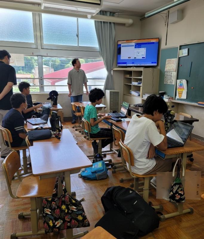 7月25日水泳記録会、応援ありがとうございました。7月26日先生方が山中中学校の研修会に参加させていただいた様子や7月31日市から講師をお招きしてのマイクロビット講習会の様子をご覧ください。暑い中、がんばっています。