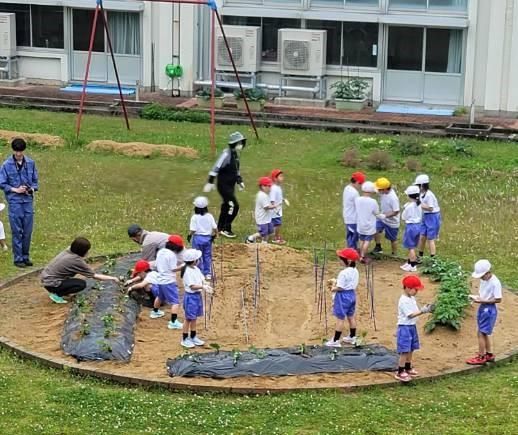 1年生は、JAの方を講師にお招きし、中庭にさつまいもを植えました。3年生の自転車教室のあと、感想を聞くと「家のまわりはあまり車が通らないから横しか見てなかったけど、後ろも確認することが大事だとわかった。」と言っていた子がいました。特に交差点での安全確認の大切さを理解したようで、よかったです。