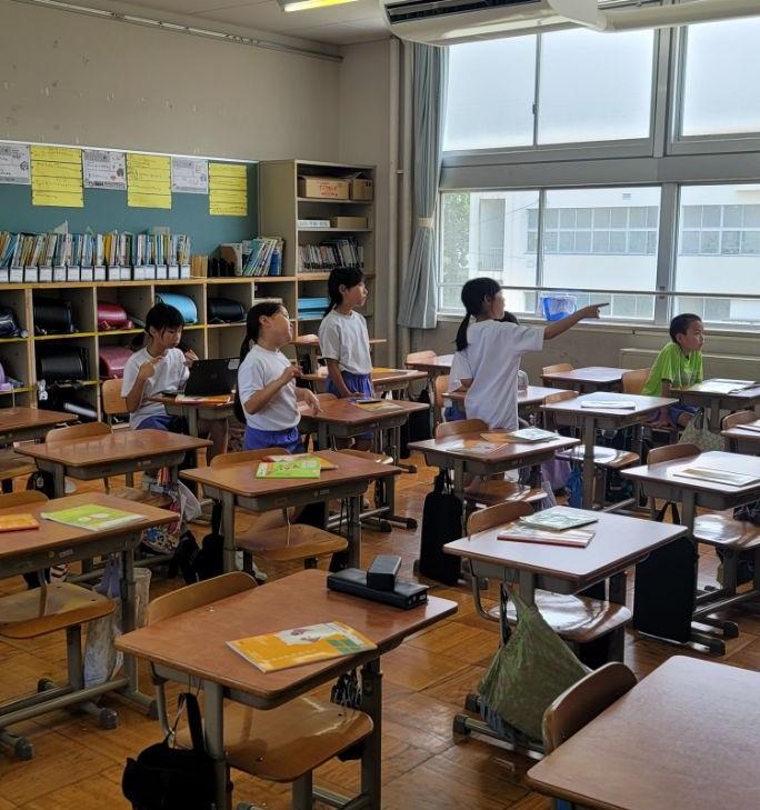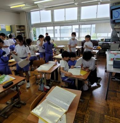 2年生まちたんけん、5年地域の方々に取材と、それぞれ出かけました。今日から始まったプールや学習の様子、休み時間の様子を見てください。