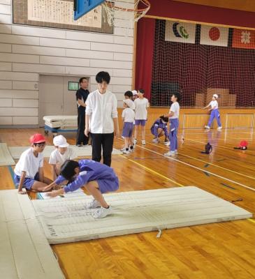 1,2年生合同体育で、2年生が1年生に教える姿が見られました。その他、授業の様子です。
