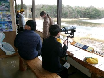 マガン、ヒシクイ(国指定天然記念物)やトモエガモ(絶滅危惧種)など、希少な水鳥を観察することができました。パンダ柄でかわいいミコアイサも見ることができました。