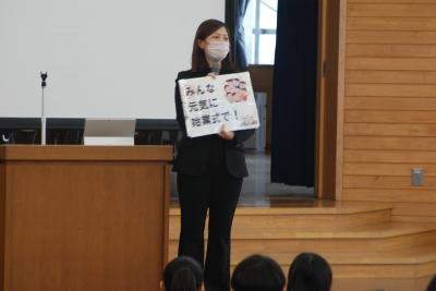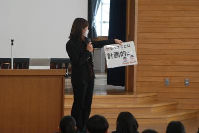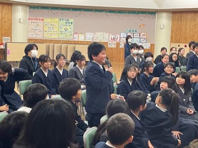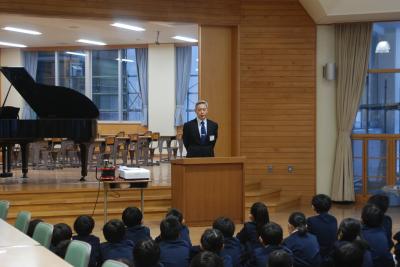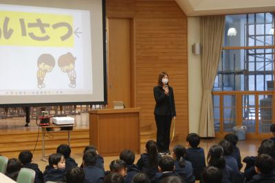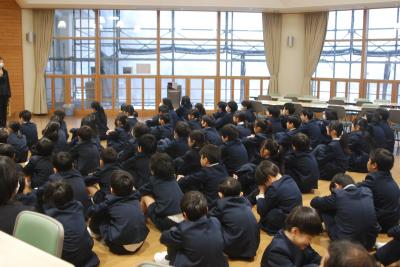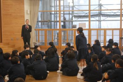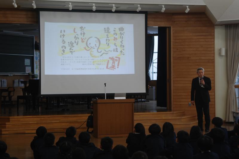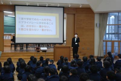 新谷先生からは、1月の生活目標「心のこもったあいさつ」についてのお話がりました。自分から進んで場に応じたあいさつができるといいですね。また、斎藤先生からは、インターネットとの付き合い方についてのお話がありました。