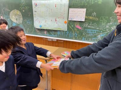 (株)パソナグループの皆様から、1~3年生に色鉛筆のセットとスケッチブックをいただきました。これからの冬休み、外で遊べないときは思いっきりお絵描きができますね。