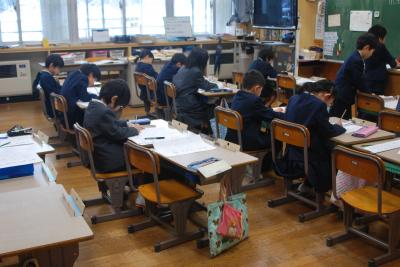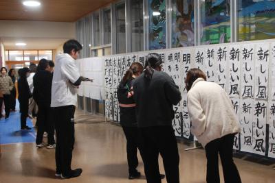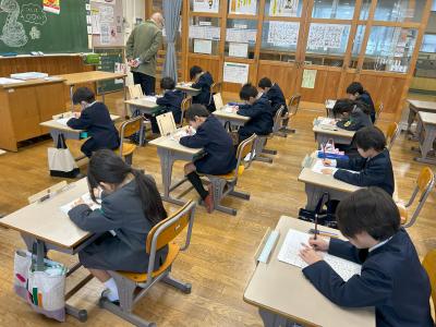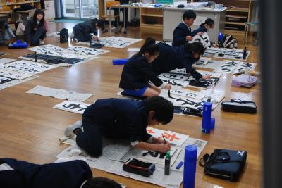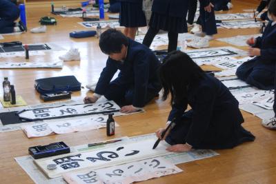 8日(水)の始業式に引き続き、校内書き初め大会を行いました。各学年に分かれて、硬筆と毛筆で練習の成果を出そうと取り組んでいました。ピーンと張りつめた静寂の中、筆を動かす音だけがする時間は、書き初め大会ならではです。