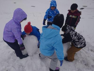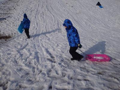 久しぶりに雪がつもったので、1年生の生活科として「雪遊び」をしました。学校の斜面を利用して、ソリ遊びや雪だるまづくりをしました。大人にとって雪は、降らないで欲しいと思うのですが、子どもにとってはどんどん降ってたくさん雪遊びをしたのでしょうね。