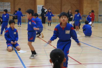 今年も恒例の「なわとび集会」を体育・環境員会の皆さんが開催してくれました。児童は、短なわとびでは1分間の「早回し跳び」と自分で跳ぶ技を決めた「自由種目」に挑戦します。