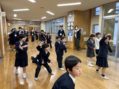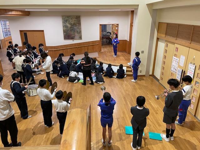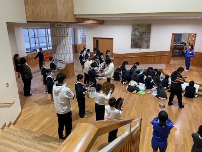 新鼓笛隊の練習が始まり2週間が経ちました。今日は初めての全体練習です。指揮者の高嶋さんを中心に、心をそろえて演奏の練習をしています。2月20日(木)の披露が楽しみです!!