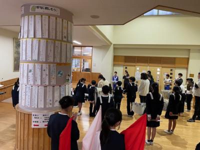 夫婦ひな人形の置物は、82歳のおばあちゃんが作ってくださったそうです。児童玄関のところに展示してありますから、来校された折にはご覧ください。