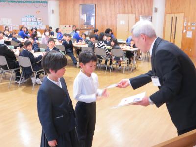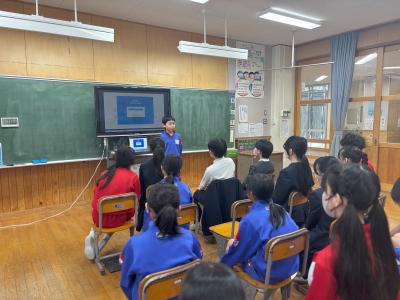 お互いの学校紹介をしたり、総合的な学習の時間にどんな学習をしているかなどを交流しました。また、清里小学校から義援金も送っていただきました。その使い道については、5年生が考える予定です。ありがとうございました。
