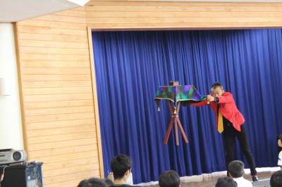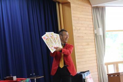 本日のお昼休みに、マジシャンのルパンさんがマジックを披露してくださいました。トランプの柄が変わったり、テーブルが宙に浮いたり、びっくりドッキリのマジックショーでした。