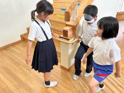 見えない世界に不安と怖さがあることや、介助(サポート)してもらうことで、安心して歩いたり階段を昇り降りできました。