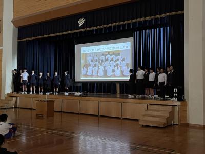 今年度の集会は、発表後に児童が感想を言うことにしました。回を重ねるごとに、発表する人数多くなり内容もしっかりしてきました。