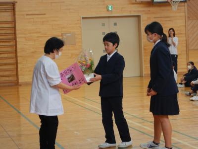 本日で、残念ながら給食調理員の町分さんが勤務地を変わられます。2か月間という短い期間でしたが、安全でおいしい給食を作てくださいり、ありがとうございました。