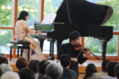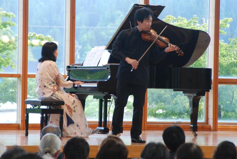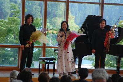 6月2日の日曜日に、本校の校歌やOh援歌を作曲された、森ミドリさんが柳田地区の皆さんを応援したいとコンサートを開いていただきました。そして、校歌を作詞した村中將起さん、世界的に活躍されているバイオリニストの佐藤久成さんも参加して、素晴らしい演奏を披露していただきました。