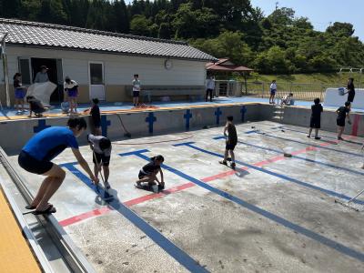 本日、5・6年生がプール掃除をしてくれました。今年もきれいなプールで、思いっきり水泳や水遊びをできるように、一生懸命に掃除してくれました。