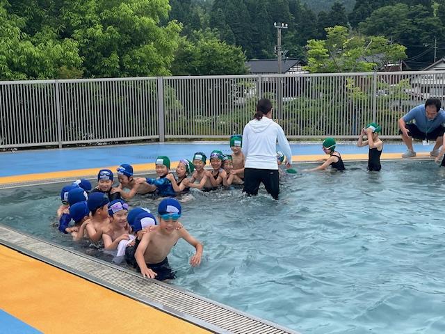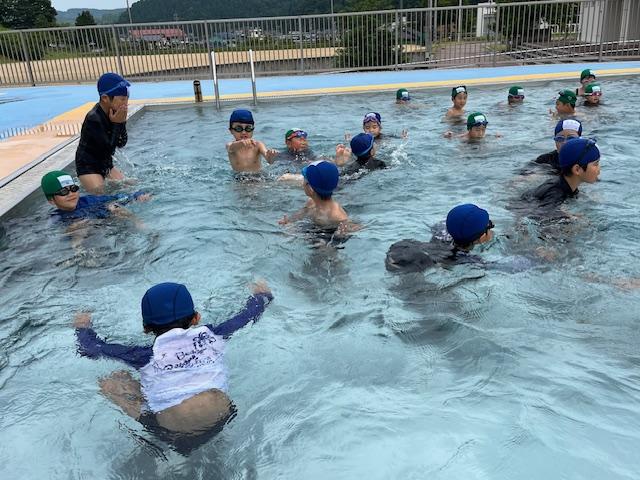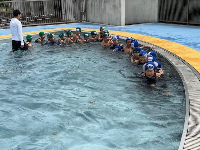 3年生と4年生は、バタ足で進む練習をしていました。こつをつかむと前に進むスピードが速くなっているのを感じ取っていました。