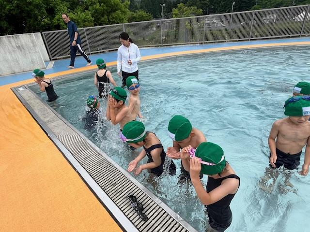 1・2年生のプールでの授業。水に慣れることが目標です。