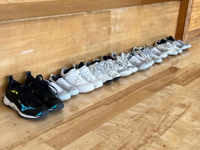 体育館で脱いだ内履きズックが、とてもきれいに並んでいる4年生。これなら、いつかオリンピック選手が出るかもしれません。