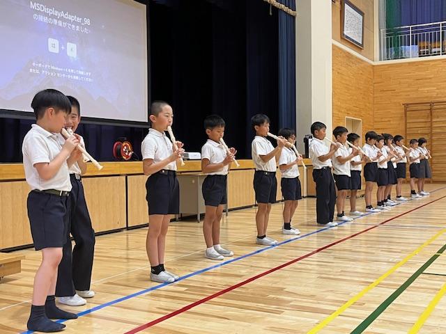 全校集会のあと、児童集会がありました。3年生の学年発表がありました。各学年、校長室まで暗唱に来ています。3年生の暗唱の課題である早口言葉を上手に言ってくれました。自分は、3年生のように言えそうにありません。また、リコーダーの演奏もとても上手でした。去年より落ち着いて学習できている3年生と聞いています。日々の練習の成果がみられました。発表後の各学年からの感想からも、そのことが伝わってきました。