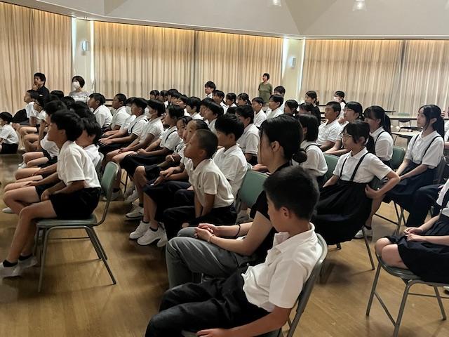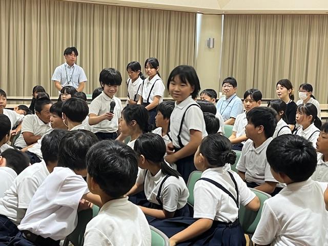 3年生~6年生の児童。最後には、たくさんの児童が感想を述べてくれました(^^♪