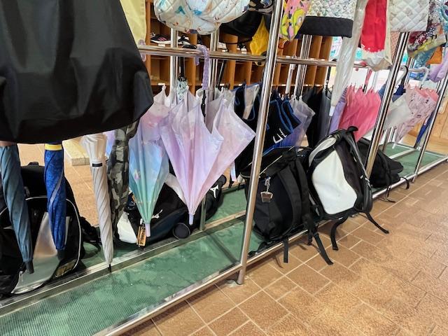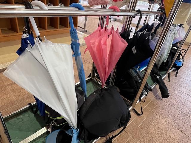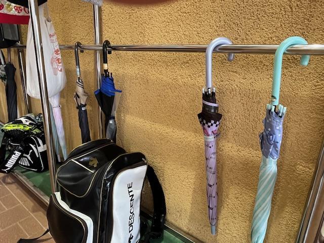 きちんと傘をしばってかけてあるものとそうでないもの。