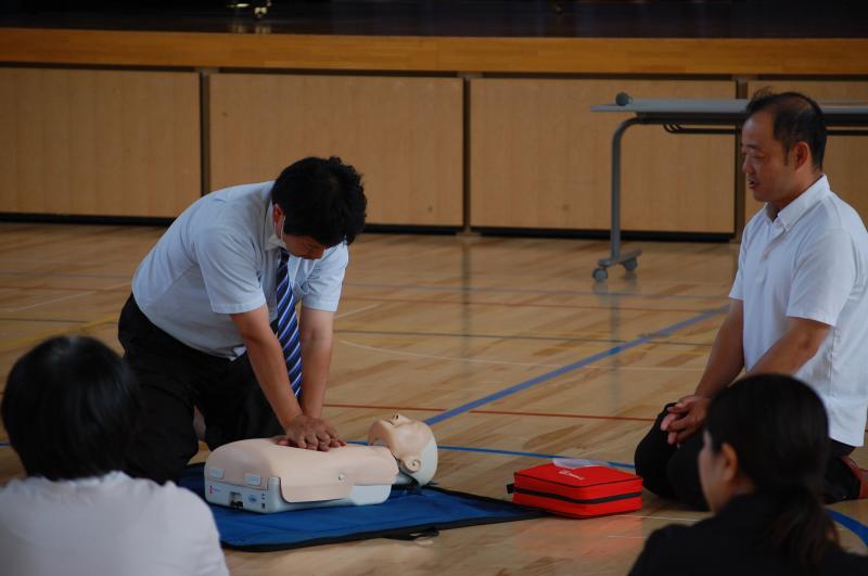 今週からプールでの授業が始まります。保護者の皆さんと教職員で、能登消防署の方を招いて、救命救急講習会を行いました。いざというときに、落ちついて行動できるように・・。