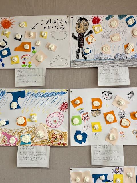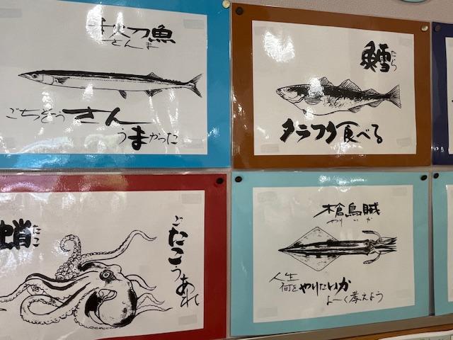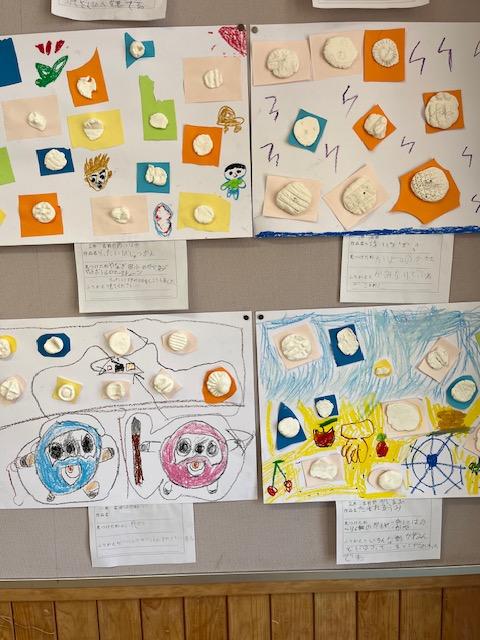 1年生と2年生の教室の間には、図工の作品が掲示してありました。個性あふれる作品です(^^♪