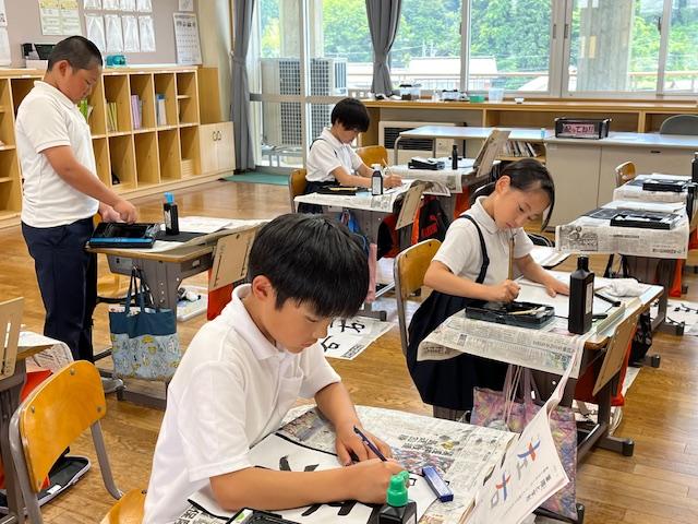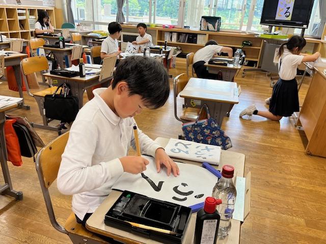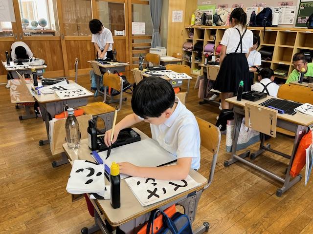 静かに集中して筆を走らせている4年生と5年生でした(^^♪