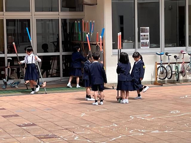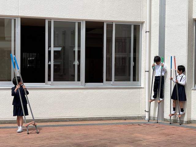 竹馬にチャレンジする児童が多かったです。